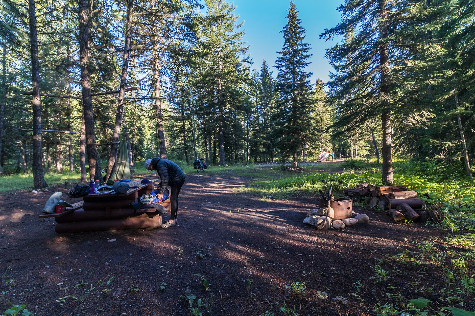 Deze drie dagen onderweg naar de grensovergang naar de USA, over de Flathead en Wigwam stroomgebieden, worden de passen steeds moeilijker! Ik moet alles geven om steeds weer op de geplande overnachtingsplek te komen. Overdag zien we (Steve, Peter en Koen) elkaar bijna niet, want ieder rijdt z'n eigen tempo. 's Avonds komen we elkaar in het kamp toch weer tegen.